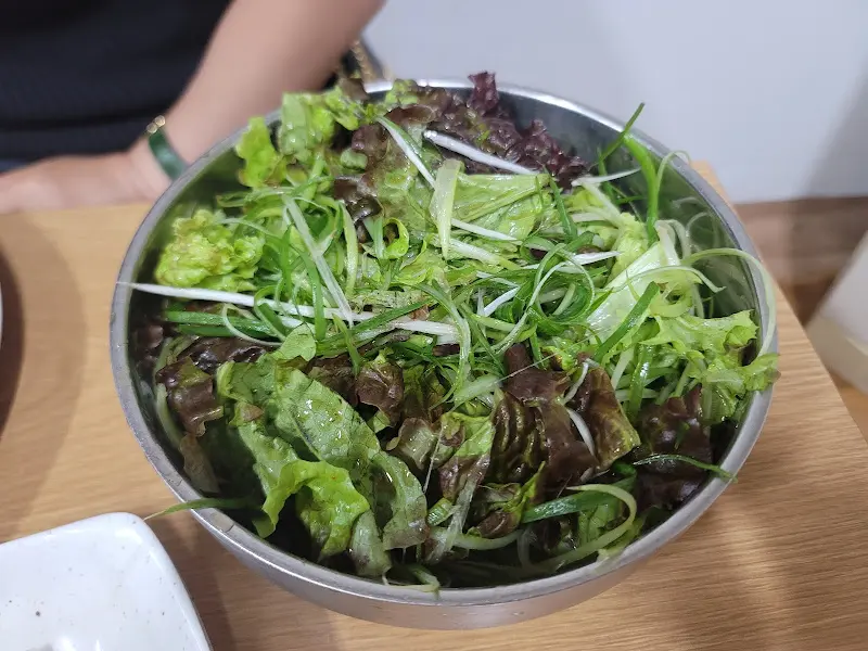 주문 후, 빠르게 기본 찬들이 차려졌다. 화려한 가짓수를 자랑하는 것은 아니었지만, 하나하나 정갈하고 맛깔스러워 보였다. 특히 쌉쌀하면서도 향긋한 장아찌는 입맛을 돋우기에 충분했다. 샐러드 또한 신선한 채소와 상큼한 드레싱의 조화가 훌륭했다. 곁들임 찬들이 과하지 않으면서도 고기의 풍미를 더욱 살려줄 것 같다는 기대감이 들었다.