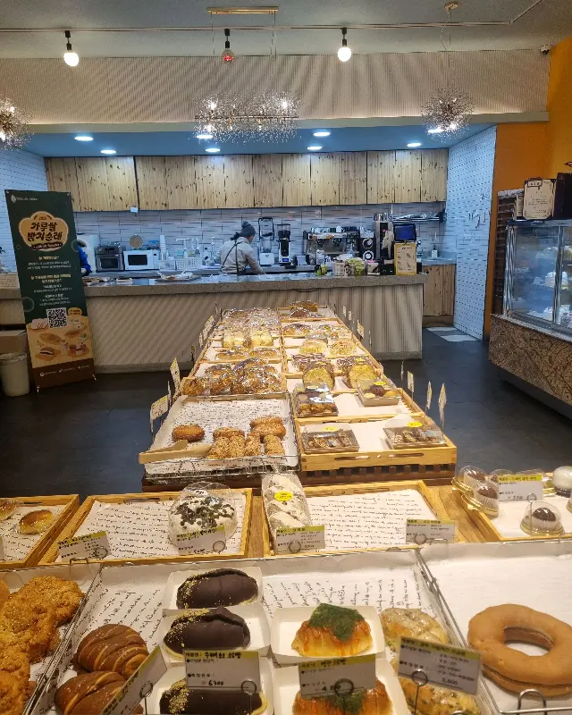 문을 열고 들어서자, 고소한 빵 냄새가 코를 간지럽혔다. 갓 구워져 나온 빵들이 진열대를 가득 채우고 있었는데, 그 종류가 어찌나 다양한지 눈이 휘둥그레졌다. 빵 종류가 30가지가 넘는다고 하니, 빵을 고르는 것만으로도 한참이 걸릴 것 같았다. 행복한 고민에 빠져 빵들을 하나하나 둘러보기 시작했다.