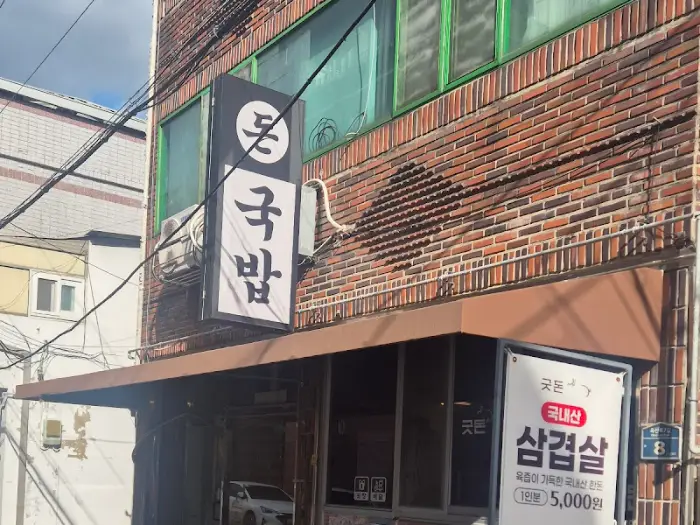 어느 날, 문득 뜨끈하고 진한 국물이 간절해졌습니다. 쌀쌀한 바람이 불기 시작하니 자연스럽게 따뜻한 국밥 한 그릇이 떠올랐는데, 이때 머릿속에 스쳐 지나간 곳이 바로 대구 북구청 근처에 위치한 ‘돈국밥’이었습니다. 이미 많은 분들이 입소문으로 추천하는 곳이었지만, 저는 직접 그 맛과 분위기를 경험해 보고 싶다는 생각에 망설임 없이 발걸음을 옮겼습니다. 가게 앞, 붉은 벽돌 건물에 걸린 하얀 간판에는 큼직하게 ‘국밥’이라는 글자가 쓰여 있었고, 그 옆에는 5,000원이라는 파격적인 가격을 내세운 삼겹살 현수막이 걸려있어 첫인상부터 ‘이곳은 뭔가 다르다’는 기대를 갖게 했습니다.