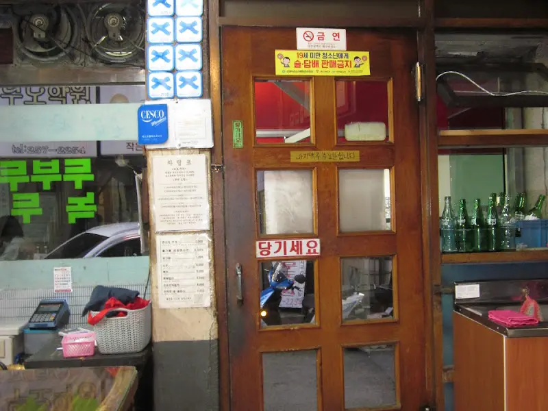 문을 열고 들어서는 순간, 마치 시간 여행을 떠나온 듯한 기분! 낡은 나무 문과 빛바랜 벽, 세월의 흔적이 느껴지는 소품들이 찐 노포 감성을 제대로 자극했다. 요즘 흔한 깔끔하고 세련된 인테리어는 아니었지만, 오히려 이런 정겨운 분위기가 훨씬 좋았다. 할머니 집에 놀러 온 듯한 푸근함이랄까?