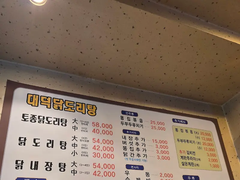 대덕닭도리탕 메뉴판