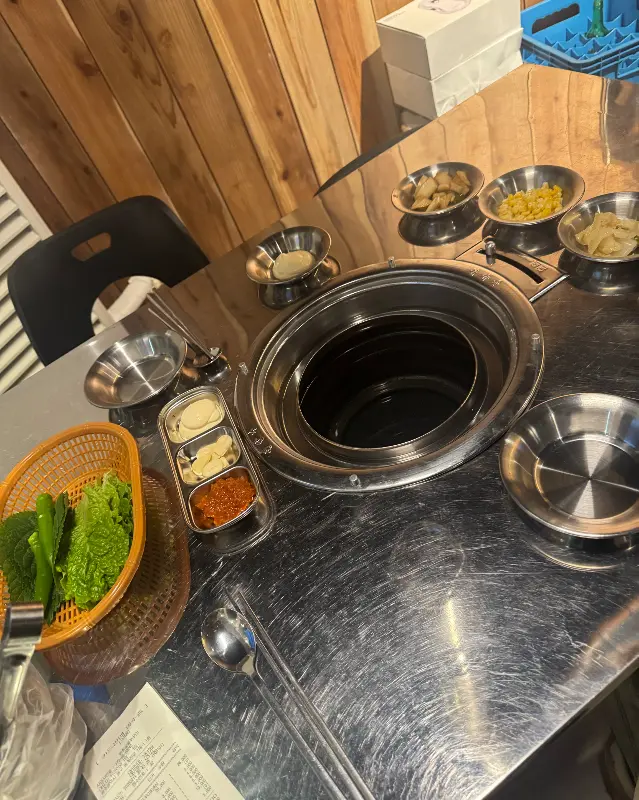 매장 문을 열자마자 숯불 향이 확 풍겨오는 게, 진짜 제대로 찾아왔다는 확신이 들었다. 넓고 깔끔한 인테리어도 완전 내 스타일! 테이블 간 간격도 넉넉해서 편하게 먹을 수 있을 것 같았다. 특히 회식하는 팀들이 꽤 많아 보였는데, 그만큼 맛은 보장된 곳이라는 거겠지? 기대감 폭발! 🔥