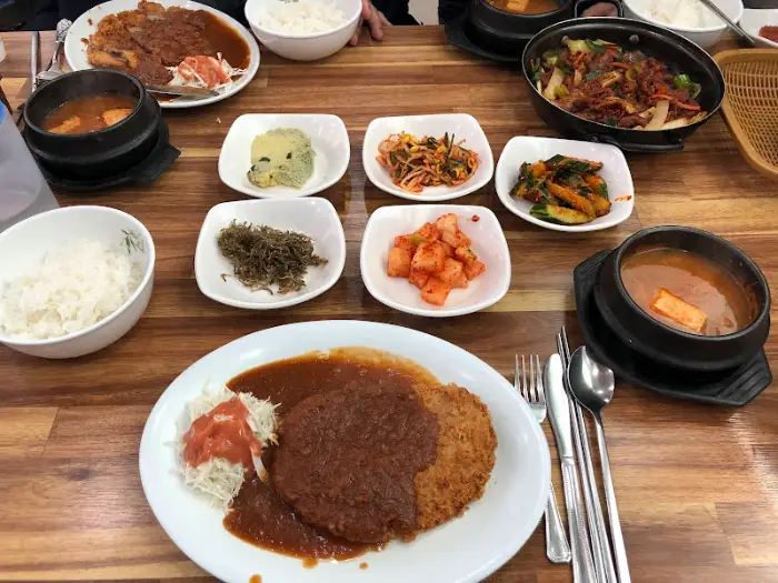 더욱 흥미로운 점은, 돈까스와 함께 제공되는 기본 찬 구성이었습니다. 일반적인 돈까스 식당에서는 볼 수 없는 뚝배기 된장찌개가 함께 나온다는 사실은 놀라움을 안겨주었습니다. 이는 앞서 언급한 ‘된장찌개 맛집’이라는 평이 괜한 것이 아니었음을 증명하는 강력한 증거였습니다. 돈까스의 고소함과 된장찌개의 구수함, 그리고 밥의 탄수화물이 만나 이루는 조화는 예상치 못한 ‘시너지 효과’를 만들어냈습니다.