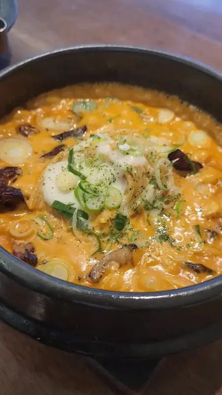 가장 먼저 등장한 것은 고추장 막창 파스타였다. 뚝배기에 담겨 뜨겁게 끓는 모습부터가 예사롭지 않았다. 뽀얀 김이 모락모락 피어오르는 가운데, 매콤한 향이 코를 자극했다. 면을 들어 올리니, 쫄깃한 막창이 듬뿍 딸려왔다. 한 입 맛보니, 매콤하면서도 깊은 감칠맛이 입안 가득 퍼져 나갔다. 고추장의 텁텁함은 전혀 느껴지지 않았고, 깔끔하면서도 중독성 강한 매운맛이 일품이었다. 막창 특유의 쫄깃함과 고소함은 파스타와 환상적인 조화를 이루었다. 이건 정말 “K-파스타”의 새로운 지평을 열었다고 감히 말할 수 있다! 느끼할 틈 없이, 젓가락을 멈출 수 없게 만드는 마성의 메뉴였다. 막창을 추가해서 먹으면 더욱 푸짐하게 즐길 수 있다고 하니, 다음 방문 때는 꼭 추가해야겠다.