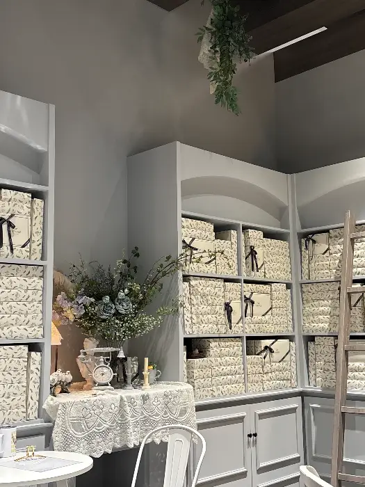 매장 안으로 들어서자마자 보이는 풍경은 마치 잘 꾸며진 서재 같았습니다. 차분한 색감의 벽과 선반에 정갈하게 쌓인 선물 상자들이 고급스러우면서도 편안한 느낌을 주었어요. 은은한 조명은 공간을 더욱 따뜻하게 만들었습니다.