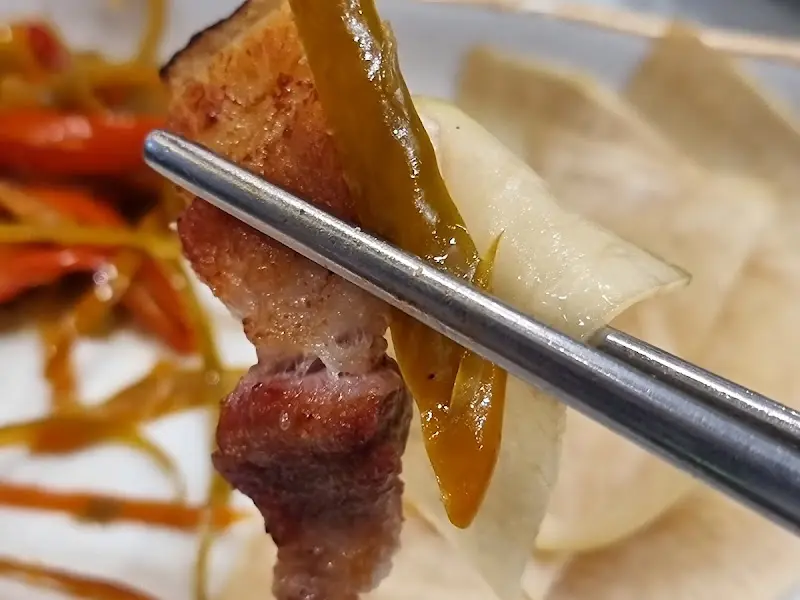 고기가 어느 정도 익으니까, 직원분이 먹기 좋게 잘라주셨어. 노릇노릇하게 익어가는 삼겹살을 보니까 진짜 참기 힘들더라. 드디어 첫 입! 와… 육즙이 팡팡 터지는 게, 진짜 입에서 살살 녹는다는 표현이 딱이야. 돼지 특유의 잡내도 하나도 안 나고, 고소하고 쫀득한 게, 진짜 꿀맛!