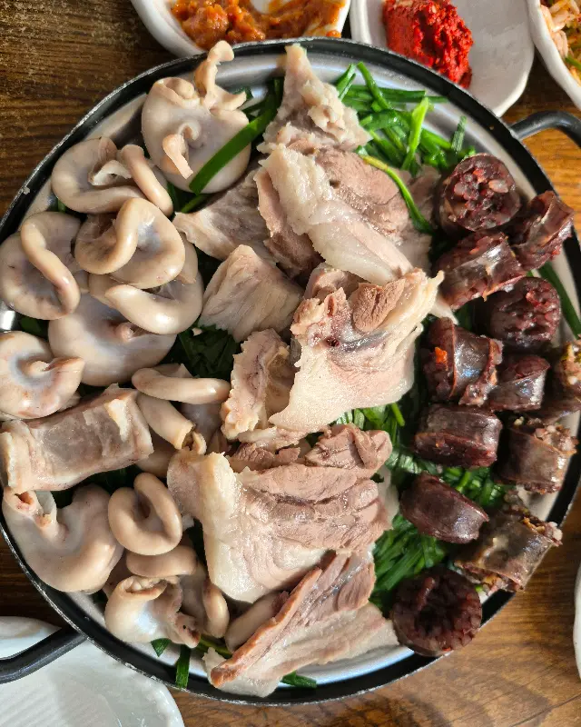 국물을 한 숟가락 떠 맛보니, 깊고 진한 풍미가 입안 가득 퍼져 나갔다. 돼지 특유의 잡내는 전혀 느껴지지 않았고, 깔끔하면서도 담백한 맛이 인상적이었다. 국물의 깊이는 오랜 시간 정성껏 우려낸 육수에서 비롯되는 듯했다. 순대는 쫄깃하면서도 부드러웠고, 내장은 씹을수록 고소한 맛이 우러나왔다. 특히 암뽕 순대는 톡톡 터지는 식감과 함께 입안 가득 퍼지는 풍미가 일품이었다는 후기를 미리 접했었는데, 역시나 기대를 저버리지 않았다.
