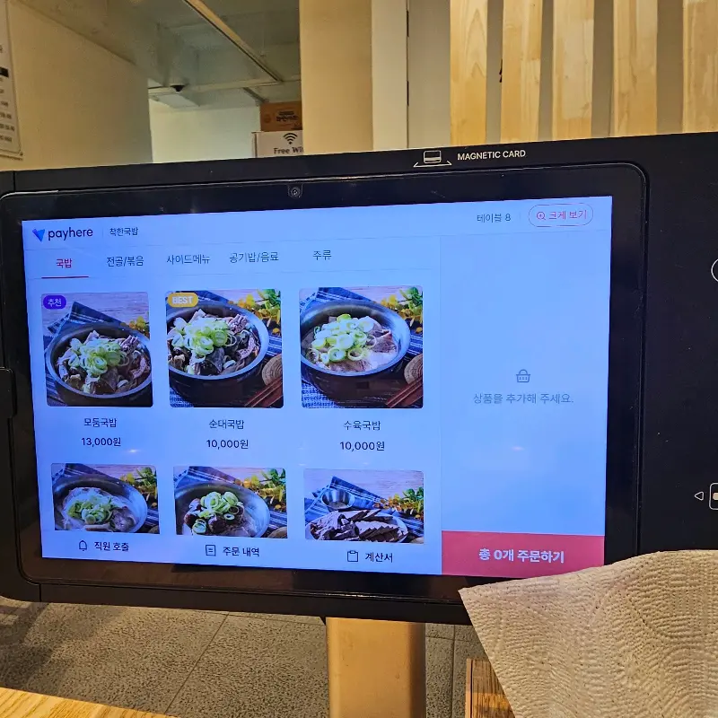 테이블마다 키오스크 뙇! 주문부터 결제까지 완전 스마트해.