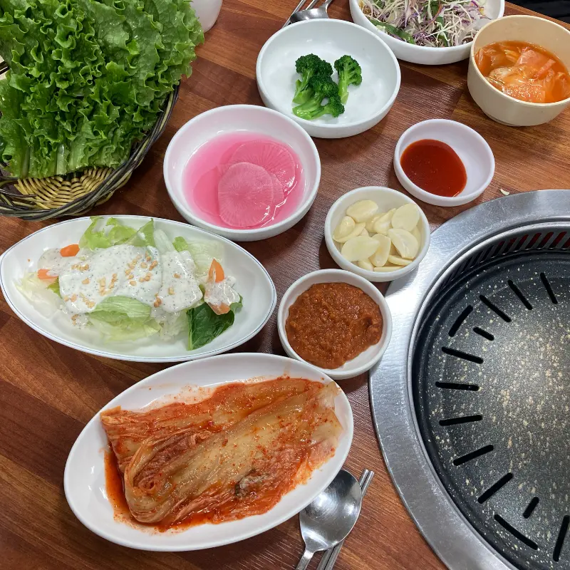 특히 여기는 상추를 진짜 많이 줘서 너무 좋았다. 싱싱한 상추에 삼겹살 두 점 올려서 쌈장 듬뿍 찍고 마늘까지 넣어서 먹으면… 진짜 천국이 따로 없었다. 솔직히 상추 리필 안 되는 곳 가면 좀 아쉬운데, 여기는 처음부터 상추를 엄청 많이 줘서 그런 걱정은 전혀 없었다.
