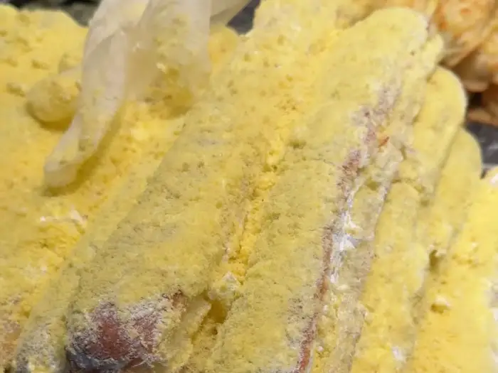 황금빛 가루를 듬뿍 묻힌 생크림 스틱의 먹음직스러운 비주얼!