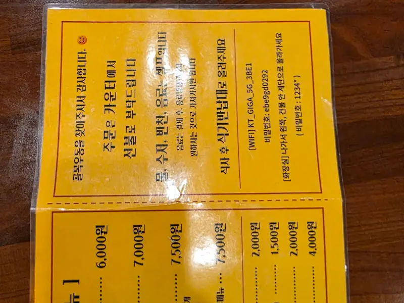 자리에 앉아 메뉴판을 보니 가격이 진짜 착하더라. 요즘 물가에 이런 가격이라니, 솔직히 믿기지 않았어. 나는 친구의 강력 추천 메뉴인 두부튀김우동을 시켰어. 가격은 6,500원! 게다가 주먹밥까지 기본으로 나온다니, 이거 완전 혜자잖아? 주문은 주방 앞에서 직접 하고, 물이랑 반찬은 셀프로 가져다 먹는 시스템이었어.