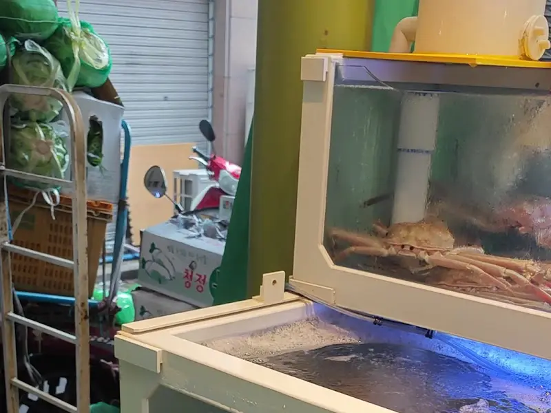 어느덧 뉘엿뉘엿 해가 저물어가는 오후, 나는 발걸음을 재촉하여 망원시장으로 향했다. 왁자지껄한 사람들의 활기 넘치는 에너지와 맛있는 냄새가 코를 간지럽히는 그곳에서, 오늘의 목적지인 ‘대게특별시’를 찾아 나섰다. 평소 게 요리를 즐겨 먹는 나는, 망원시장에 숨겨진 이 작은 보석 같은 곳에 대한 기대를 감출 수 없었다.