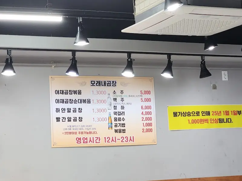 어스름한 저녁, 왠지 모르게 끌리는 곱창의 유혹을 뿌리치지 못하고, 명지대 인문캠 근처에 숨어있는 맛집이라는 “모래내곱창”을 향해 발걸음을 옮겼다. 20년 넘게 이 자리를 지켜왔다는 이야기에, 괜스레 마음 한구석이 따뜻해지는 기분이었다. 간판에서 느껴지는 세월의 흔적은, 마치 노련한 장인의 손길처럼 기대감을 더욱 증폭시켰다.