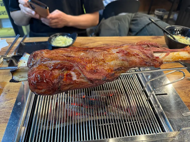 우리는 망설임 없이 양다리를 주문했다. 이 집의 대표 메뉴라고 하니, 안 먹어볼 수 없었다. 양다리는 굽는 시간이 꽤 걸린다고 해서 미리 예약을 해야 한다고 한다. 우리는 다행히 미리 예약을 해둔 덕분에 기다림 없이 바로 맛볼 수 있었다. 잠시 후, 엄청난 크기의 양다리가 통째로 등장했다. 그 웅장한 비주얼에 압도당했다. 윤기가 좌르르 흐르는 겉면과 육즙을 가득 머금은 듯한 모습은, 보기만 해도 군침이 돌았다.