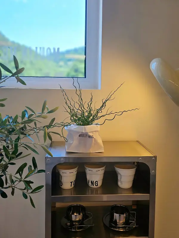 물랑무주는 화이트 톤의 깔끔한 외관과 탁 트인 통창이 인상적인 카페다. 카페 내부는 미니멀하면서도 세련된 인테리어로 꾸며져 있어, 편안하고 아늑한 분위기를 자아낸다. 특히 통창을 통해 보이는 푸르른 산 뷰는 그야말로 장관이었다. 마치 그림 속에 들어와 있는 듯한 느낌을 받았다고나 할까. 내가 방문했던 날은 날씨가 화창했는데, 햇살이 따스하게 쏟아지는 창가 자리에 앉아 커피를 마시니 저절로 힐링이 되는 기분이었다.
