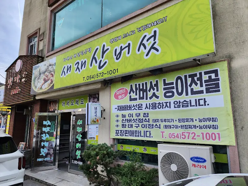 문경새재의 맑은 공기를 한껏 들이마시고 나니, 뱃속에서 꼬르륵 아우성이었다. 등산 후에는 무조건 맛있는 걸로 몸보신해줘야 하는 거, 국룰 아니겠어? 마침 눈에 띈 “새재 산버섯”! 간판부터가 ‘나 자연산이야!’라고 온몸으로 외치는 듯했다. 고민할 겨를도 없이 문을 활짝 열고 들어갔다. 오늘 제대로 버섯전골로 힐링하는 거야!