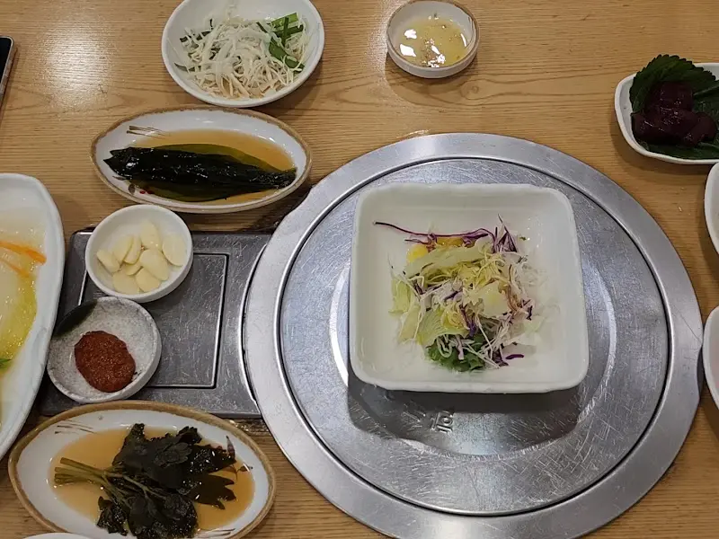 푸짐한 밑반찬과 신선한 고기의 향연
