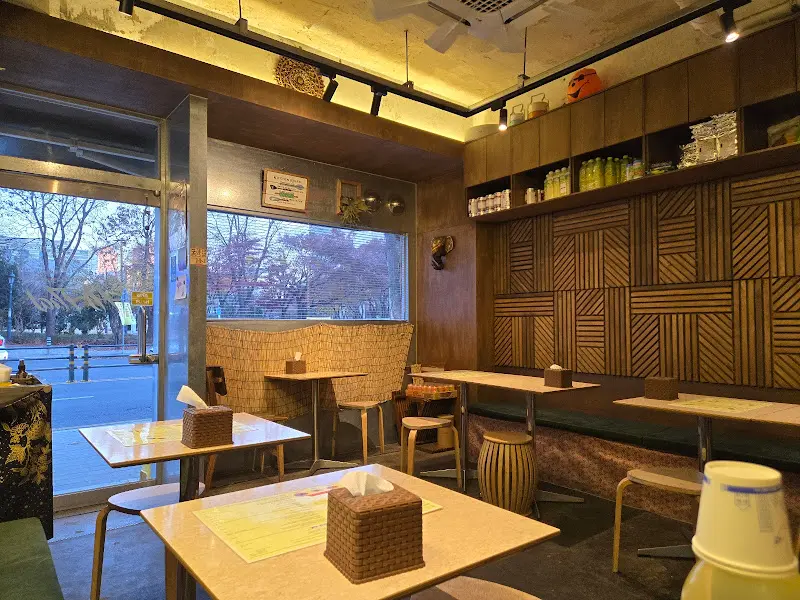 내부 인테리어는 소박했지만, 태국 현지의 작은 식당에 온 듯한 느낌을 주었다. 나무로 된 벽면과 천장에 매달린 라탄 조명, 그리고 곳곳에 놓인 태국 장식품들이 이국적인 분위기를 더했다. 테이블 간 간격이 좁은 것은 조금 아쉬웠지만, 오히려 이런 비좁음이 현지 식당의 활기찬 분위기를 연상시켜 긍정적으로 작용했다.