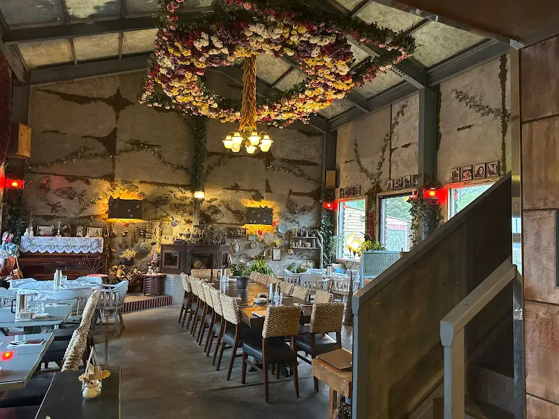 문을 열자, 후각을 자극하는 향긋한 바질 향과 함께 아늑한 분위기가 나를 맞이했다. 천장에는 형형색색의 꽃 장식이 화려하게 펼쳐져 있고, 앤티크 가구와 소품들이 곳곳에 놓여 있어 마치 유럽의 어느 고풍스러운 산장에 온 듯한 착각을 불러일으켰다. 조명의 따뜻한 색온도는 2700K 정도로 추정되는데, 이는 공간 전체에 편안하고 안정적인 느낌을 더하는 데 기여했다.