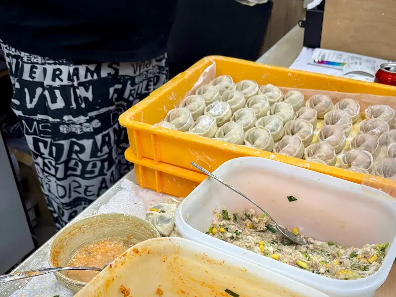 가게 문을 열고 들어서자, 후각 수용체를 자극하는 고소한 냄새가 코를 간지럽혔다. 오픈 키친에서는 사장님께서 능숙한 솜씨로 만두를 빚고 계셨다. 마치 세포 분열처럼 정확하고 일정한 모양의 만두들이 노란색 트레이 위에 질서정연하게 놓여 있는 모습은 감탄을 자아냈다. 숙련된 장인의 손길에서 만들어지는 만두는 단순한 음식을 넘어 예술의 경지에 이르는 듯했다.