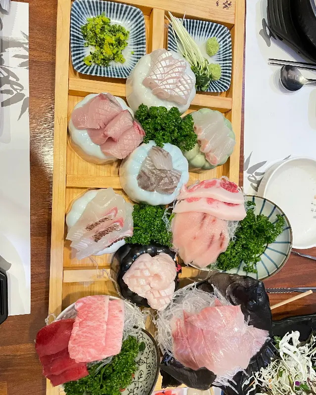 가장 먼저 눈에 들어온 것은 화려한 비주얼의 사시미였다. 에서 확인할 수 있듯, 신선한 해산물이 정갈하게 담겨 나왔다. 광어, 도미, 참치 등 다양한 종류의 회가 마치 예술 작품처럼 펼쳐져 있었다.