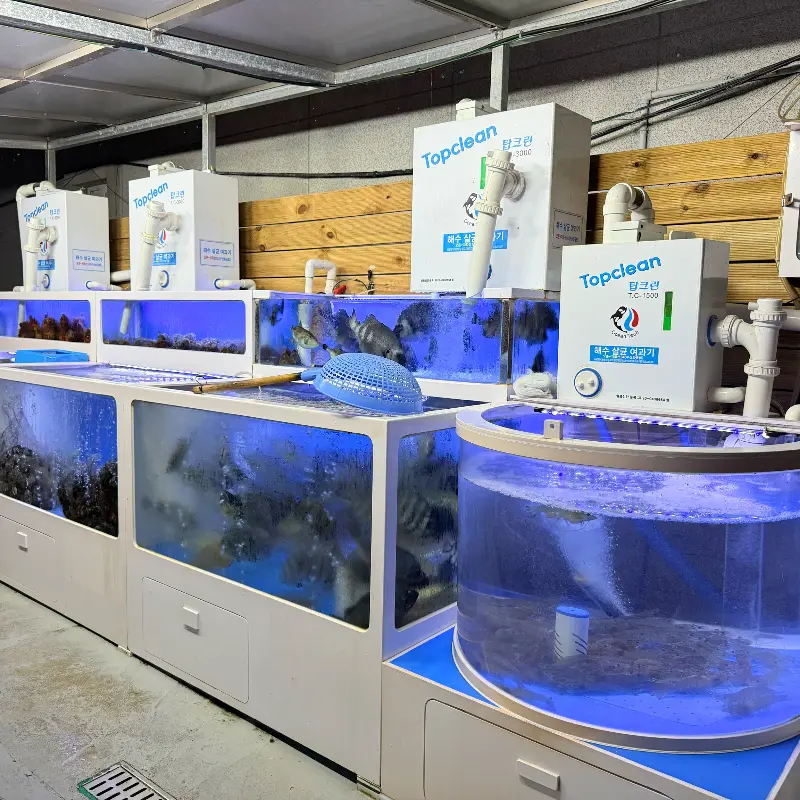 가게 앞에 다다르자, 싱싱한 해산물을 가득 담은 수족관이 먼저 눈에 들어왔다. 맑고 깨끗한 물 속에서 유영하는 물고기들의 싱싱함이 그대로 전해지는 듯했다. 깔끔하게 정돈된 수족관은 이곳의 청결함을 엿볼 수 있는 지표였다. 마치 바닷속 작은 세상을 옮겨 놓은 듯한 풍경에 감탄하며, 나는 기대감을 가슴에 품고 가게 안으로 들어섰다.