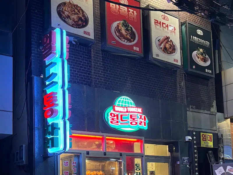 어스름한 저녁, 부산의 거리를 걷는 발걸음은 설렘으로 가득 찼다. 오늘 저녁은 왠지 특별한 음식을 맛보고 싶다는 생각에, 며칠 전부터 눈여겨 봐둔 한 맛집으로 향했다. 형형색색의 네온사인이 밤거리를 수놓고, 그 불빛을 따라 도착한 곳은 ‘월드통닭’이었다. 간판에는 닭 그림과 함께 ‘WORLD TONGZAK’이라는 영문 글자가 적혀 있었다. 마치 세계 각국의 닭 요리를 맛볼 수 있을 것 같은 기대감을 불러일으키는 이름이었다.