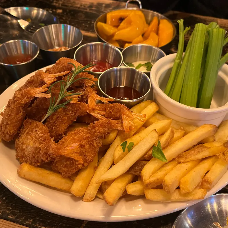 고민 끝에, 이곳의 대표 메뉴라는 페스츄리 피자와, 매콤한 후라이드 치킨을 주문했다. 잠시 후, 기본 안주로 따뜻한 감자튀김과 프레첼이 나왔다. 갓 튀겨져 나온 감자튀김은 짭짤하면서도 고소했고, 프레첼은 맥주를 부르는 마성의 맛이었다.