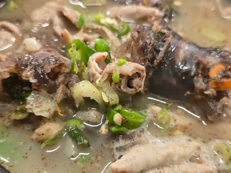 모듬 한 접시를 맛보는 동안, 서비스로 제공된 순대국 국물은 또 다른 감동을 선사했습니다. 뽀얀 국물은 보기만 해도 깊은 맛이 느껴졌습니다. 한 모금 들이키는 순간, 입 안 가득 퍼지는 사골 육수의 풍미는, 마치 어머니의 품처럼 포근하고 따뜻했습니다. 글루탐산나트륨(MSG)의 인위적인 감칠맛이 아닌, 뼈 속 깊은 곳에서 우러나온 자연스러운 감칠맛이었죠. 국물 속에는 다량의 콜라겐과 콘드로이틴 황산이 녹아 있을 텐데, 이는 피부 미용과 관절 건강에도 긍정적인 영향을 미칠 것으로 예상됩니다.