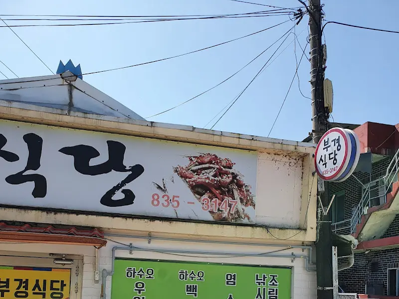 네비게이션에 주소 찍고 달리는데, 주변 풍경이 완전 그림이잖아. 논밭 뷰가 끝없이 펼쳐지는데, 마치 뮤직비디오 촬영 온 기분? 드디어 부경식당 간판이 눈에 들어왔어. 간판 옆에 붙은 우어회 사진이 벌써부터 침샘을 자극하는구만. 외관부터 느껴지는 로컬 바이브, 이거 완전 제대로 찾아왔다는 느낌적인 느낌!