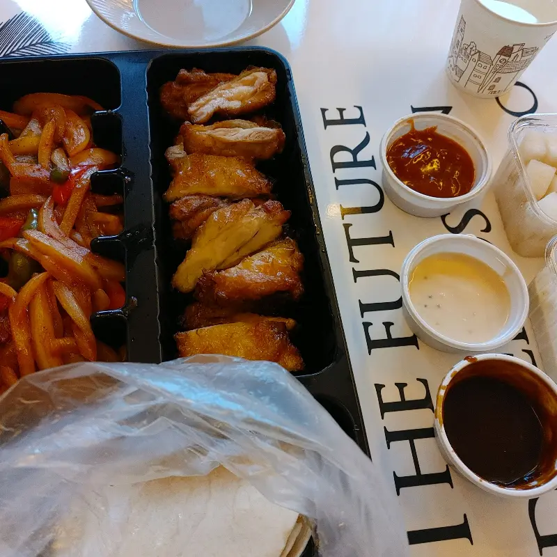 쫄뱅이 또한 기대 이상의 맛이었다. 쫄깃한 쫄면과 새콤달콤한 양념의 조합은 입맛을 돋우기에 충분했다. 특히, 쫄면과 함께 들어있는 신선한 야채들은 아삭아삭 씹히는 식감을 더해주어 먹는 즐거움을 더했다. 치킨과 쫄뱅이를 함께 먹으니, 매콤함과 고소함이 어우러져 더욱 맛있었다.
