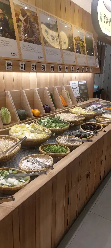 자리를 안내받고 샐러드바로 향했다. 형형색색의 채소들이 싱그러움을 뽐내고 있었다. 뷔페식으로 즐길 수 있는 샤브샤브 샐러드바는 마치 작은 정원을 옮겨 놓은 듯 다채로운 풍경을 선사했다. 신선한 야채, 샐러드, 그리고 다양한 사이드 메뉴들이 보기 좋게 정돈되어 있었다. 재료 하나하나에 정성이 느껴지는 듯했다.