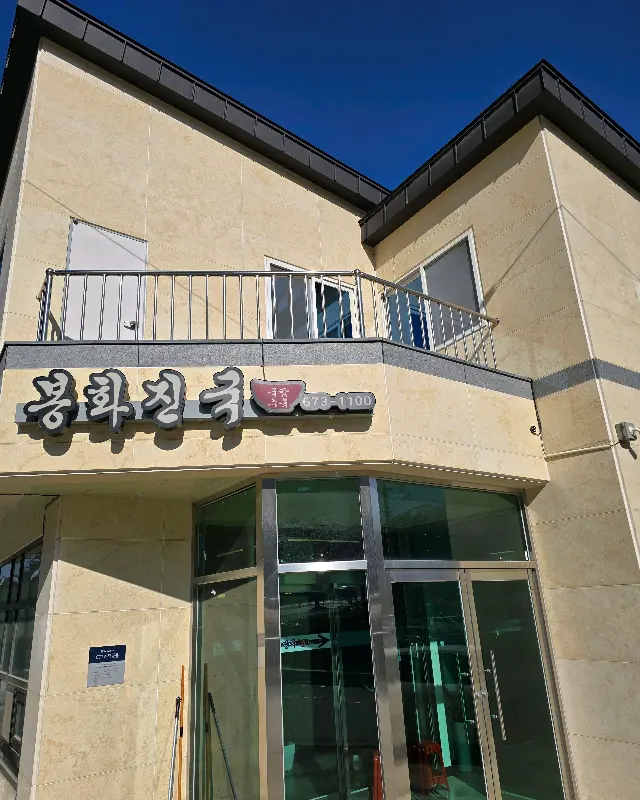 봉화진국에 대한 기대감을 품고 드디어 봉화에 도착했어. 식당은 읍내에 자리 잡고 있었는데, 생각보다 규모가 컸어. 겉에서 보기에도 깔끔하고 정돈된 느낌이랄까? 주변에 다른 식당이 별로 없어서 그런지, 유독 눈에 띄더라고. 점심시간이 살짝 지난 시간이었는데도, 주차장에는 차들이 꽤 많이 주차되어 있었어. 역시 맛집은 맛집인가 봐. 주차 공간이 넓어서 주차는 어렵지 않았어.
