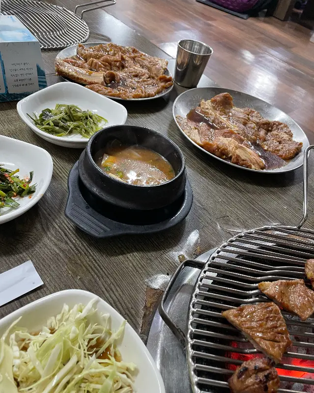 잘 익은 돼지갈비 한 점을 집어 입에 넣으니, 입안 가득 퍼지는 달콤한 육즙이 환상적이었다. 돼지갈비는 부드럽고 촉촉했으며, 숯불 향이 은은하게 배어 풍미를 더했다. 과하지 않은 양념은 돼지갈비 본연의 맛을 해치지 않으면서도 훌륭한 조화를 이루었다.