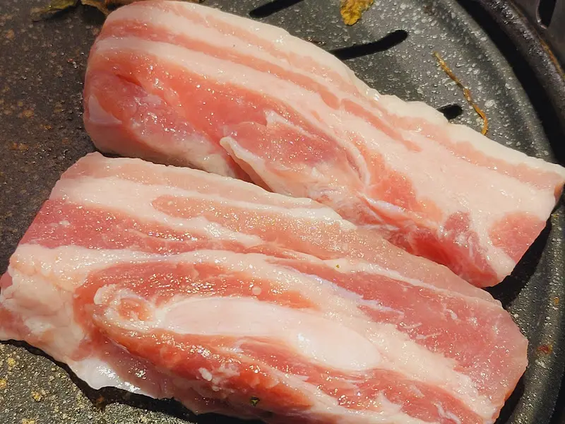 불판이 달궈지기 시작하고, 드디어 오겹살을 올렸어. 치익- 소리와 함께 고소한 냄새가 코를 찌르는데, 진짜 침샘 폭발하는 줄 알았다니까. 겉은 바삭하고 속은 촉촉하게 구워지는 오겹살을 보면서, ‘아, 여기 제대로 찾아왔구나’ 싶었어. 노릇노릇하게 익어가는 오겹살을 먹기 좋은 크기로 잘라서, 드디어 첫 입을 먹어봤는데… 와, 진짜 입에서 살살 녹는다는 표현이 딱 맞는 맛이었어! 숙성된 고기라 그런지 육즙도 풍부하고, 돼지 특유의 잡내도 전혀 안 나고 너무 맛있더라.