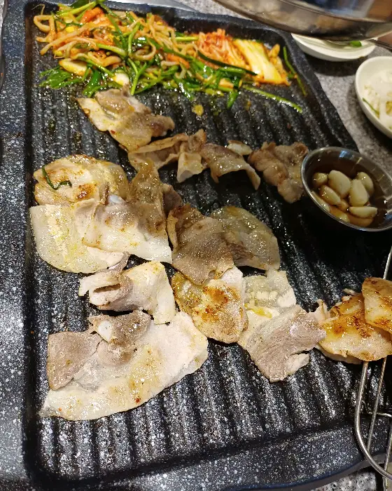 저는 이번 탐구의 주요 실험 대상으로 ‘냉동 삼겹살(냉삼)’을 선정했습니다. 리뷰에서 유난히 자주 언급되는 메뉴였기 때문이죠. 신선한 생삼겹살과는 달리, 냉삼은 급속 냉동 과정을 거치면서 지방과 단백질 구조에 미묘한 변화가 일어납니다. 이 과정에서 수분 함량이 조절되어 굽는 동안 고기가 더욱 바삭하고 쫄깃한 식감을 얻게 되죠. 마치 정교하게 설계된 열처리 공정을 거친 듯한 결과물일 것입니다.