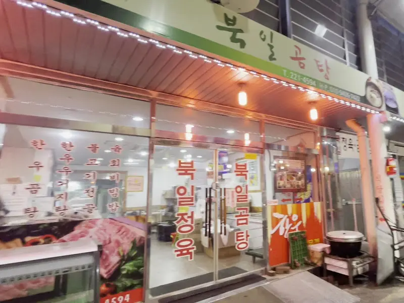 드디어 벼르고 벼르던 청주 북부시장의 숨은 보석, 북일곰탕에 방문했다. 평소 육회비빔밥 킬러인 내가 여기를 그냥 지나칠 수 없지! 시장 안에 있다는 정보만 가지고 갔는데, 좁은 골목을 헤쳐 나오는 순간, 와… 입구부터 느껴지는 찐 맛집 포스! 낡은 간판과 세월의 흔적이 느껴지는 외관이 오히려 신뢰감을 팍팍 줬다. 진짜 찐탱 맛집 스멜! 문을 열자마자 북적이는 사람들로 가득 차 있었다. 역시 맛집은 맛집인가 봐. 약간의 웨이팅 끝에 자리에 앉을 수 있었다.