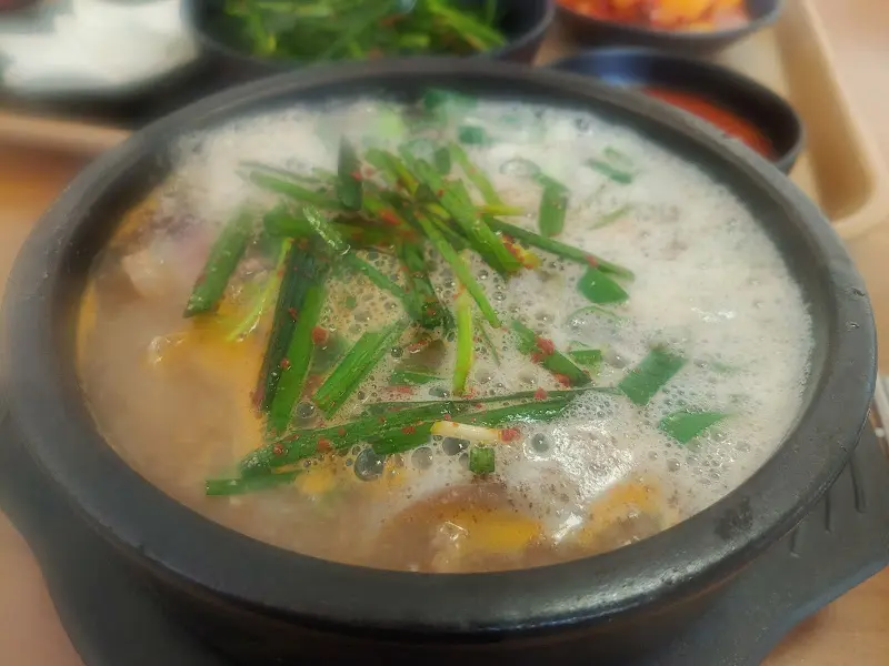 기다리는 동안, 벽에 붙은 메뉴판을 살펴보았다. 메뉴는 단출했다. 순댓국과 특순댓국, 그리고 몇 가지 주류가 전부였다. 나는 망설임 없이 순댓국을 주문했다. 잠시 후, 김이 모락모락 피어오르는 뚝배기가 내 앞에 놓였다. 뚝배기 안에는 뽀얀 국물과 함께 푸짐한 건더기가 가득했다.