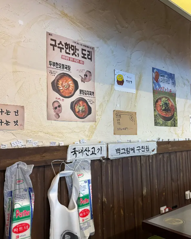 가게 문을 열자마자 느껴지는 훈훈한 기운! 레트로 분위기가 물씬 풍기는 인테리어에 마음이 몽글몽글해졌다. 약간 어둑한 조명 아래, 테이블마다 환하게 빛나는 불판이 어찌나 설레던지! 벽에 붙은 정겨운 글씨체의 메뉴판과 옛날 포스터들이 향수를 자극하는 게, 딱 내 스타일이야! 은은하게 흘러나오는 음악 선곡도 완전 센스 쩔어. 데이트하는 커플들에게 특히 강추하고 싶을 정도!