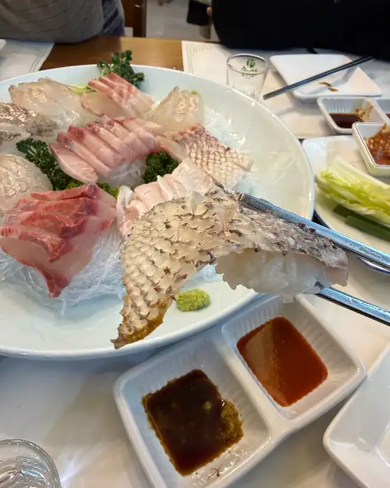 처음 주문한 건 바로 그 신선함이 핵심이라는 숙성회와 참치 특선이었지. 플레이팅부터 남달랐어. 접시 위에서 펼쳐지는 색의 향연, 싱싱한 빛깔이 살아 숨 쉬는 듯한 느낌. 젓가락으로 집어 드는 순간, 묵직함이 느껴지는 회 한 점, 입안에 넣는 순간! Oh, my god! 이 맛은 레전드, 내 혀가 센드! 쫄깃하면서도 부드럽게 녹아내리는 그 식감, 비린 맛은 1도 없고 은은한 단맛이 입안 가득 퍼지는데, 이건 마치 천상의 맛, 내 영혼까지 춤추게 했지.
