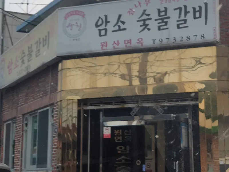 면 소재지 구석진 곳에 위치해 있다는 정보를 입수하고, 네비게이션을 뚫어져라 쳐다보며 좁은 골목길을 헤쳐나갔다. 드디어 모습을 드러낸 암소숯불갈비! 겉모습은 세월의 흔적이 느껴지는 평범한 식당이었지만, 왠지 모르게 풍겨져 나오는 ‘맛집’의 기운에 기대감이 마구 샘솟았다. 번쩍번쩍한 금색으로 치장된 출입구는 묘하게 힙한 느낌마저 자아냈다. 마치 숨겨진 던전에 들어가는 용사마냥 설레는 마음으로 가게 문을 활짝 열었다.