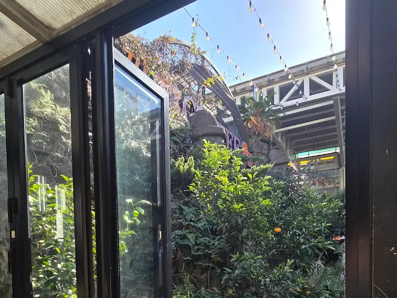 계산을 하고 나오면서 보니, 가게 앞에 푸릇푸릇한 정원이 꾸며져 있더라고. 밥 먹고 잠시 앉아서 소화도 시킬 겸, 정원 구경도 했지. 알록달록 꽃들도 피어있고, 작은 나무들도 심어져 있는 게, 참 예쁘더라.