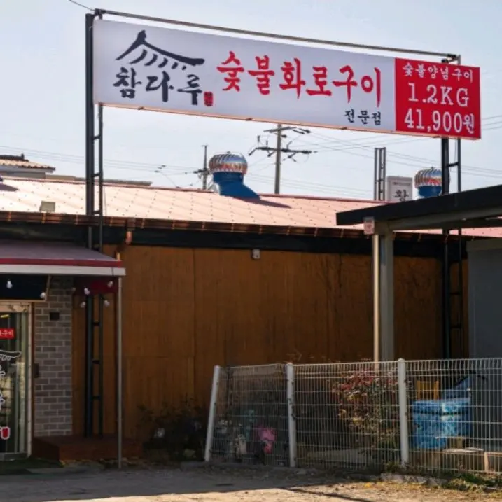 어디선가 풍겨오는 은은한 숯불 향이 코를 간지럽혔다. 마치 어릴 적 할머니 댁 마당에서 맡았던 정겨운 냄새랄까. ‘참다루’는 겉보기에도 꽤나 규모가 있는 식당이었다. 넓은 주차장에는 이미 차들이 가득했고, 식당 입구에는 대기자 명단이 빼곡하게 적혀 있었다. 역시, 맛집은 맛집인가 보다. 잠시 기다려야 한다는 안내를 받고 주변을 둘러봤다. 외관은 깔끔하면서도 정겨운 느낌을 준다. ‘숯불화로구이 전문점’이라는 간판 글씨체가 왠지 모르게 신뢰감을 더했다. 커다란 간판에는 1.2kg에 41,900원이라는 숯불양념구이 가격이 큼지막하게 적혀 있었다.