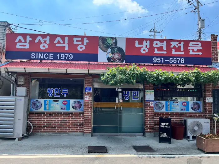 점심시간이 조금 지난, 해가 기울기 시작하는 오후. 문득 시원한 것이 당겨 발길 닿는 대로 걷다가 서천 판교의 한적한 동네에 다다랐다. 익숙한 듯 낯선 풍경 속, 붉은 간판이 눈에 들어왔다. ‘삼성식당’, 그리고 그 옆에 ‘냉면 전문’. 1979년부터 한자리를 지켜왔다는 ‘SINCE 1979’라는 문구가 왠지 모를 신뢰감을 주었다. 혼자 밥 먹는 나는 오늘도 ‘혼밥하기 좋은 곳’을 찾아 나선 참이었기에, 망설임 없이 문을 열었다.