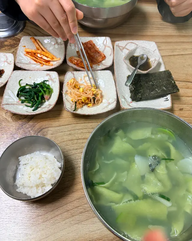 먼저, 다슬기 수제비의 맑고 시원한 국물부터 맛보았다. 한 입 머금는 순간, 입안 가득 퍼지는 다슬기의 향긋함이 일품이었다. 얇게 뜬 수제비는 쫄깃한 식감을 자랑하며, 다슬기와 환상적인 조화를 이루었다. 국물은 전혀 자극적이지 않고 깔끔하여, 아이와 함께 먹기에도 부담이 없을 것 같았다.