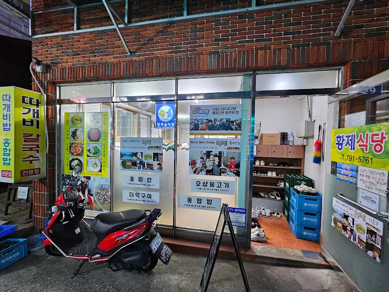 배에서 내려 짐을 풀자마자 곧장 황제식당으로 향했어. 간판부터가 ‘나 맛집이오’ 하는 아우라를 뿜어내더라고. 2016년 1박 2일 촬영 때 음식 협찬을 했다는 문구는, 이미 수많은 사람들의 입맛을 사로잡았다는 증거겠지. 기대감에 부푼 가슴을 안고 문을 활짝 열었어.