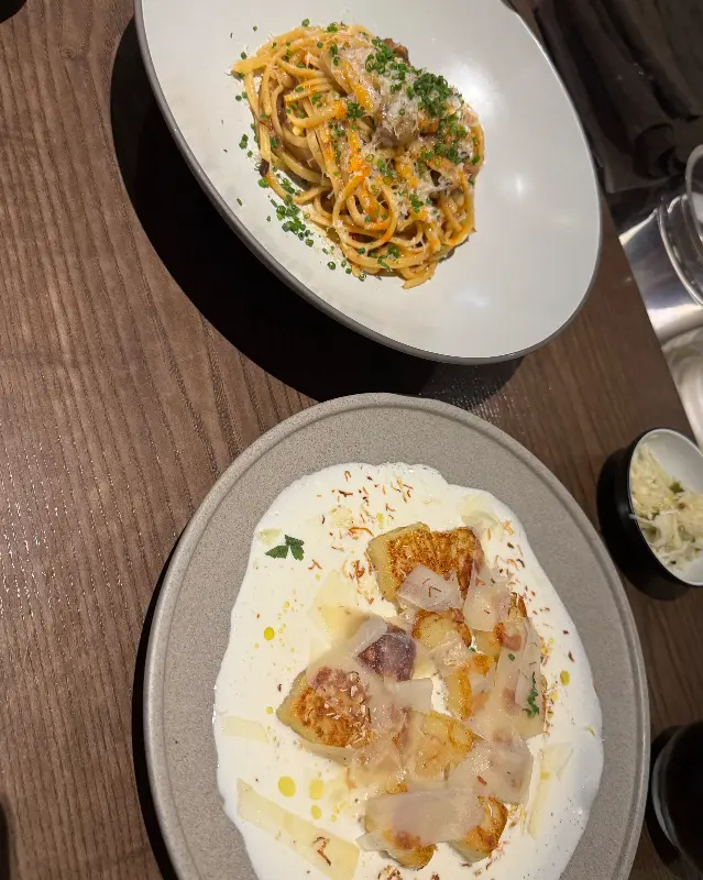 그리고 드디어, 오늘의 주인공인 마스카포네 감자 뇨끼 등장! 접시 위에 가지런히 놓인 뇨끼는, 겉은 노릇하게 구워져 있고 속은 촉촉해 보였다. 마스카포네 치즈 소스가 넉넉하게 뿌려져 있고, 파르미지아노 레지아노 치즈가 눈처럼 흩뿌려져 있었다.