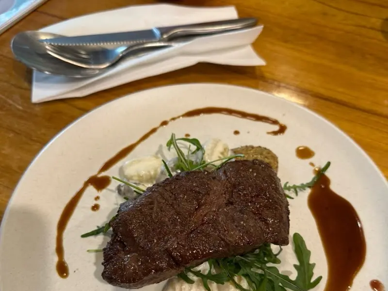 가장 먼저 등장한 것은 부채살 스테이크였다. 160도에서 마이야르 반응이 제대로 일어난 듯, 겉은 갈색의 아름다운 크러스트를 자랑하고 있었다. 나이프로 조심스럽게 스테이크를 가르자, 촉촉한 육즙이 흘러나왔다. 한 입 맛보니, 입안 가득 퍼지는 풍부한 육향과 부드러운 식감이 혀를 황홀하게 만들었다. 스테이크의 굽기 정도는 완벽했고, 질 좋은 단백질이 아미노산으로 분해되면서 만들어내는 감칠맛이 극대화되어 있었다. 곁들여 나온 트러플 크림 감자 뇨끼는 또 다른 차원의 풍미를 선사했다. 뇨끼의 쫀득한 식감과 트러플의 깊은 향이 환상적인 조화를 이루며, 마치 미식의 오케스트라를 감상하는 듯한 기분이었다.