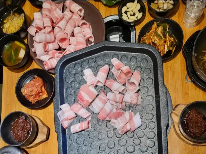 쌈을 한 입 가득 넣고 씹을 때마다, 입 안에서는 마치 작은 축제가 벌어지는 듯했다. 신선한 채소의 향긋함, 짭짤한 쌈장의 감칠맛, 그리고 대패삼겹살의 고소함이 혀끝에서 조화롭게 어우러졌다. 쌈을 다 먹고 난 후에는, 입가에 맴도는 여운이 오랫동안 지속되었다.