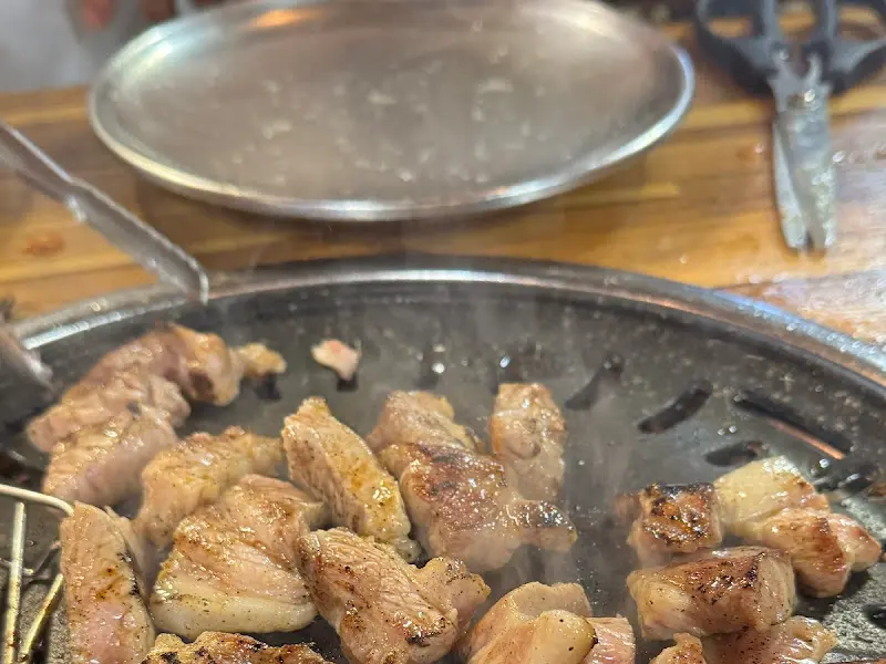 불판이 달궈지자마자, 지체 없이 뒷고기를 올렸지. 치익- 하는 소리와 함께 고소한 냄새가 코를 찌르는데, 이야, 이 냄새만 맡아도 침이 꼴깍 넘어가더라. 앞뒤로 노릇노릇하게 구워진 뒷고기를 한 점 집어 입에 넣으니, 쫀득하면서도 담백한 맛이 입안 가득 퍼지는 게, 정말 꿀맛이더라니까.